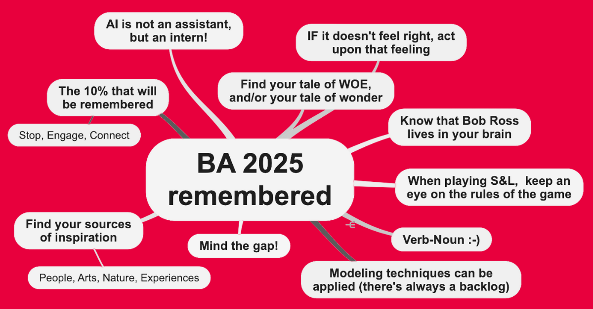 Drie dagen lang kwamen business-analisten uit heel Europa samen om te leren, te delen en te reflecteren op ons vakgebied. Wat mij vooral bijbleef: de rol van AI in ons werk, het belang van communities of practice en de noodzaak om kritisch te blijven op onze eigen modellen.