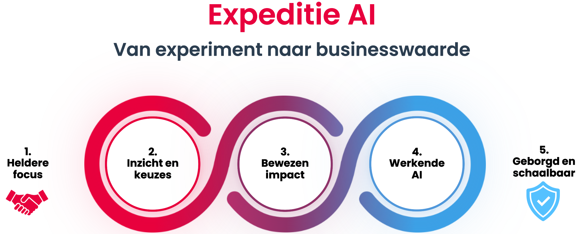 Zes op de tien organisaties zet AI in. Minder dan een derde heeft er beleid voor. Medewerkers die op eigen houtje eerste stappen zetten en pilots die geen waarde leveren. Expeditie AI helpt je stap voor stap aan een heldere AI-strategie: van experiment, tot implementatie en resultaat.